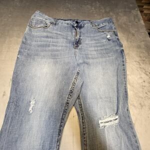 Seven7 Jeans Womens 20W Light Wash Tummyless High Rise Flare Distressed Stretch