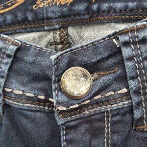Seven7 Jeans Women's Dark Wash Distressed Jewel Embellished Denim Legging Sz 25