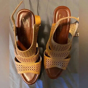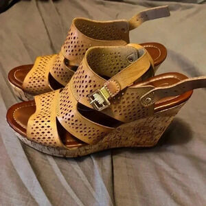 Seven7 Lauren Cork Wedge Sandals in Camel Size 8 Barely Worn EUC