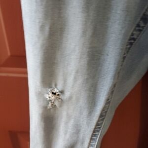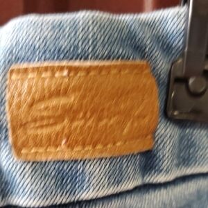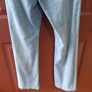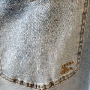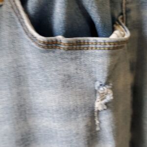 Stylish light blue jeans with a distressed design. Perfect for casual wear.