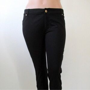 These beautiful ponte skinny jeans feature faux front pockets. Side leg opening 9" zipper detailing. 2 pocket, button/zip fly closure. Stretch.
