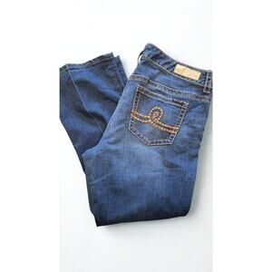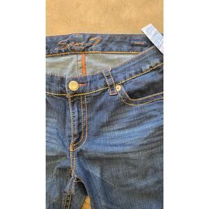 Seven7 Luxe Size 18 Plus Mid Rise Bootcut Jeans Dark Wash Orange Stitching