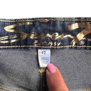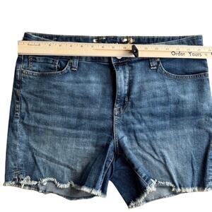 Seven7 Medium Wash Blue Denim Raw Hem Boyfriend Relaxed Jean Shorts Sz 12