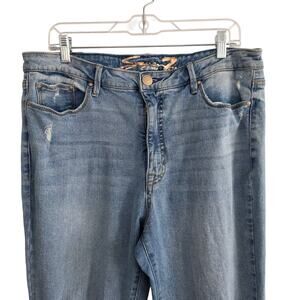 Seven7 Medium Wash Distressed Slim Flared Leg Denim Jeans Woman's 14