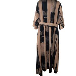 Seven7 Melissa McCarthy Womens Maxi Wrap Dress Tan Black Stripe Pockets Plus 3X