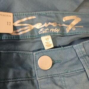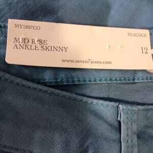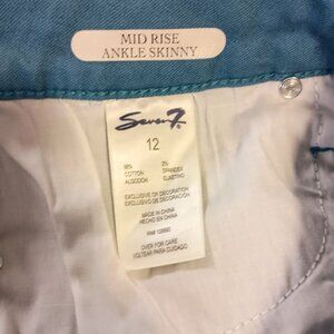 Seven7 Mid Rise Ankle Skinny Jeans Release Hem Peacock Blue NWT Size 12 Stretch
