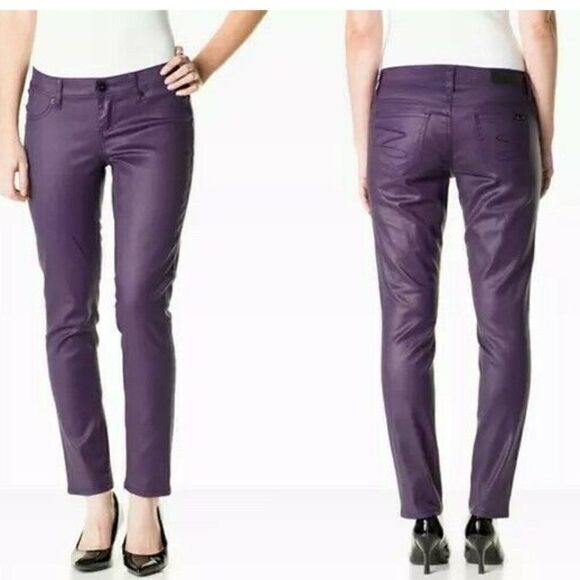 Seven7 Petite Women’s Denim Coated Low -Rise Skinny Jeans, Purple, Size 8P