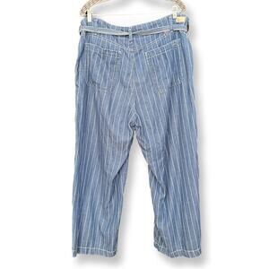 Seven7 Pinstripe Wide Leg Belted Crop Denim Pants
