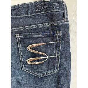 Seven7 Premium Denim Blue Jeans Straight Leg Women's Size 14 Dk Wash High Rise