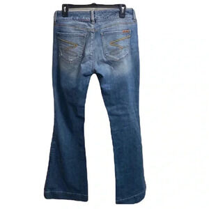 Trendy and chic sexy flare jeans. Intentional distressing to front. Zipper and button closure. Excellent condition.