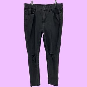 Seven7 Size 16 (36x29) Short Tummyless High Rise Skinny Jeans Black Faded Stone Wash Distressed