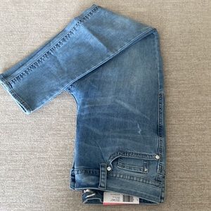 Seven7 “Starlette” Mid Rise lightly distressed Skinny Jeans. Zip fly. Buttons at waist. Flap back pockets that button closed. Size 14. NWT. Waist measures approx 35 inches. Rise measures approx 11 inches. Inseam measures approx 28 inches.
