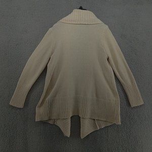 Seven7 Sweater Womens Medium Cream White Open Front Cardigan Big Ribbed Collar