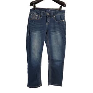 Seven7 Thick Stitch Mid Rise Dark Stone Wash Capris Womens Size 4 Cropped Blue