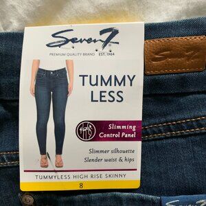 Brand New with Tags - Seven7 Tummy Less High Rise Skinny Jeans Size 8 Get that slimmer silhouette, slender waist and hips look Color: Avalon (dark blue)