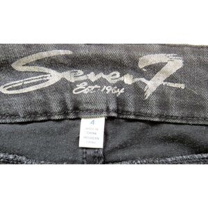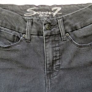 Rock these great distressed knees Seven& skinny straight leg jeans! Great condition. A little stretch and tummyless make these very figure flattering. Made from 64% cotton, 32% Polyester and 1% spandex for a little stretch. Approx 28" waist, 12" rise and 26" inseam. 5 pockets and zip with button closure.
