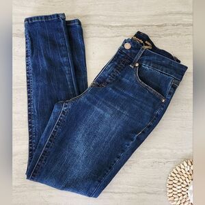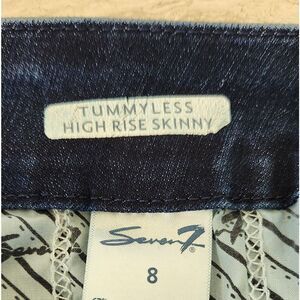 These Seven7 skinny jeans in a classic blue hue offer a sleek and modern fit. Crafted with a hint of stretch, they provide comfort and flexibility for all-day wear. The clean, uniform appearance makes them a versatile choice for both casual and smart-casual occasions.
