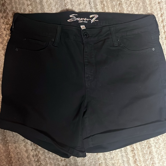 Seven7 Weekend Shorts Womens Black Mid Rise Rolled Hem Denim Zip Fly Size 16W
