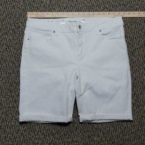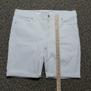 Made from comfortable stretch denim, it's got a curved back yoke and contoured back pockets, plus rolled hems that emphasize the laid-back vibe.