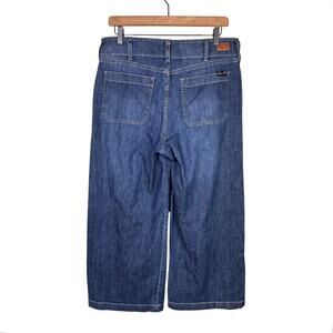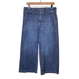 Seven7 Wide Leg Capri Cropped High Rise Square Pocket Blue Denim Jeans