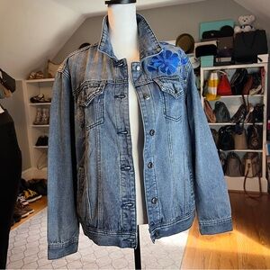 Seven7 Women's Blue Large Denim Jacket with Floral Embroidery