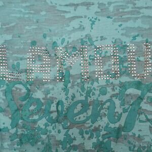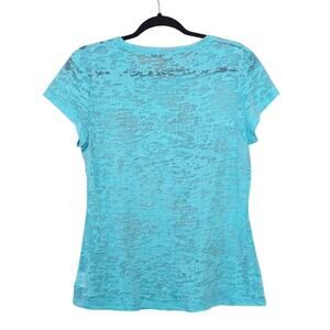 Seven7 Women's Burnout Tee Size L Blue Sheer Short Sleeve Embellished Top