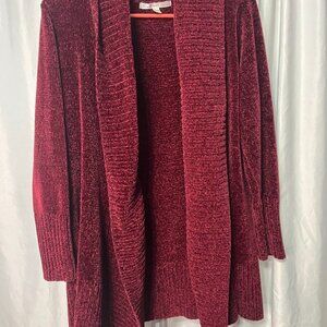 Seven7 Women’s Chenille Open Front Cardigan Sweater Burgundy Red M