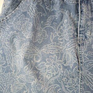 Seven7 Womens Delancey Blue Floral Cotton Blend Paisley Denim Skirt Size 14