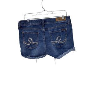 Seven7 Womens Distressed Denim Jean Shorts With Frayed Hem & Embroidered Size 14