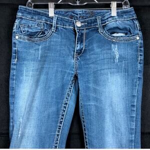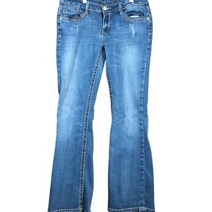 Seven7 Womens Jeans Blue Denim Bootcut Distressed Embroidered Pockets Stretch 8