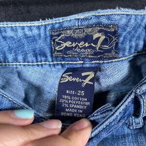 Seven7 Womens Jeans Blue Denim Flare Medium Wash Bedazzled Pockets Stretch 25