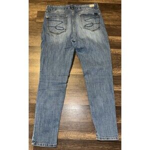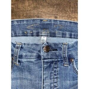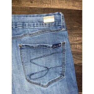 Seven7 Women's Jeans Size 12 33x29 Mid Rise Blue Denim Straight Distressed Cuts