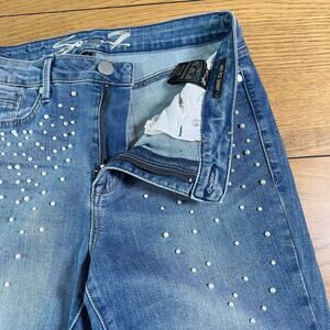 Seven7 Womens Pearl Embellished Mid Rise Skinny Jeans Starling Size 12