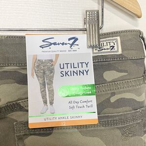 Seven7 Womens Size 12 Utility Ankle Skinny Jeans Green Camo Pockets Stretch