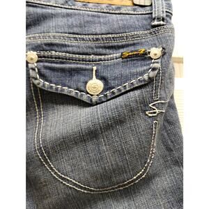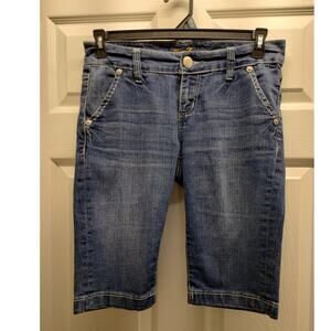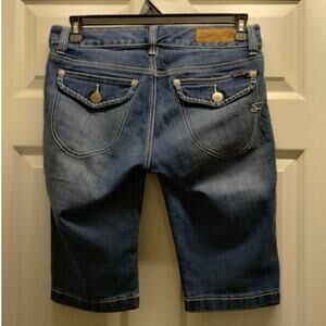 Seven7 Women's Size 6 Denim Blue Jean Shorts Bermuda Whiskered Two-Pocket