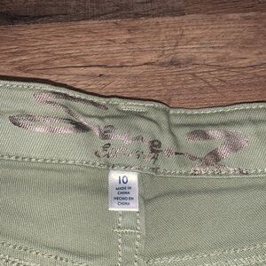 Green are Utility High Rise Ankle Skinny. These have likely never been worn.
