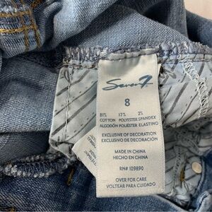 Seven7 RN 109890 style MY1975DE tummyless skinny leg denim jeans in Color Affection Wash. Manufactured distressing and whiskering. Size 8
