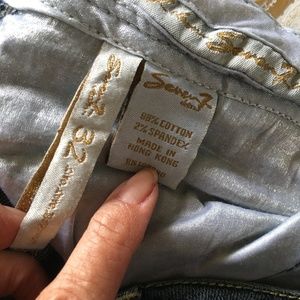Approx measurements by flat lays: waist 34", rise 8.5", inseam 33.5", outseam 42", leg opening 20"