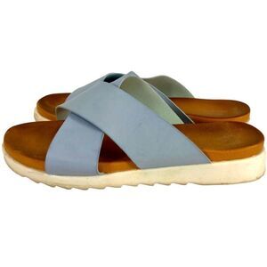 Seven7 Women's Blue Synthetic Strappy Slides Sandals - 8