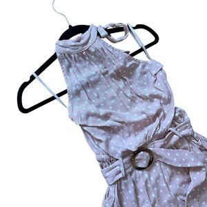 Seven Wonders Pink Polka Dot Sleeveless Halter Romper with Tortoise Shell Belt