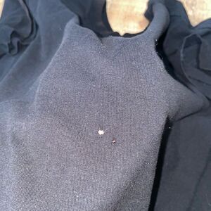 Pre owned with flaws - there are a few small holes in front and a few in back.