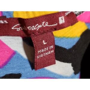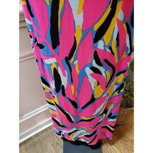 Sevengate Maxi Dress Womens L Multi Geo Print Cut Out Ankle Slit Spaghetti Strap