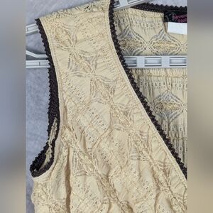 Seventeen Fashion 1X Sleeveless Lace Blouse Tan/Brown With Ribbon Y2K