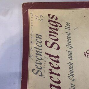 Seventeen Sacred Songs For Church And General Use, Low Voice, Schirmer. Blemishes and writing on it. Please see pictures. All music/lyrics very good