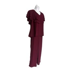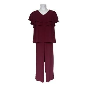 Seventh Avenue Georgette Popover Cape Caplet Tunic Burgundy Autumn Rose Pant Set