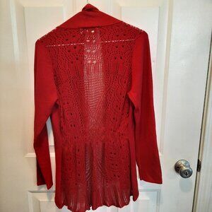 Seventh Avenue Open Cardigan with Lacy Pointelle Back; Size L; Red; Long sleeve