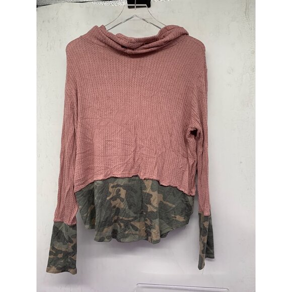 Seventh Ray Women’s Large Pink Waffle Knit with Camo Print Long Sleeve Shirt 7th