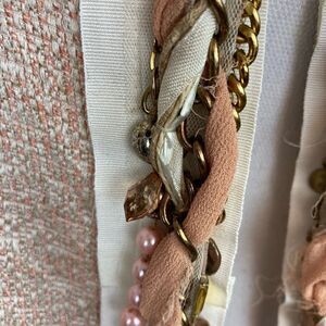 Seventy Florence Italy ladylike chic blazer w/ ribbon bow, pearls, and chains