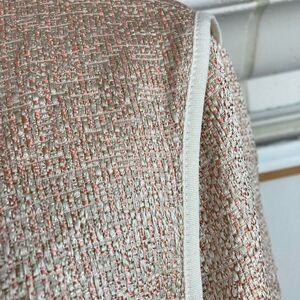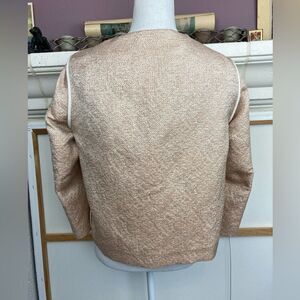 Perfect European made ladylike chicken blazers perfect for Spring. Beautiful coral pink and cream. Cream Grosgrain ribbon bow, and one hook closure. Pink pearls, gold chains, and braided matching ribbon down each side of front. EUC. Made in Florence. Pit to pit 19.5” and shoulder to hem 22”. Luxury. No flaws. Made in Italy. Pockets and beautifully finished seams. Italian size is 46. I approximate size as 10/12. Please go by measurements for best fit.
