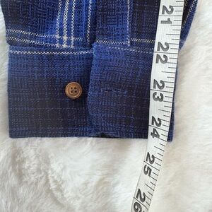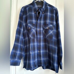 Seville Row Long Sleeves Button Down Blue Plaid Men's Shirt, Size: Large
